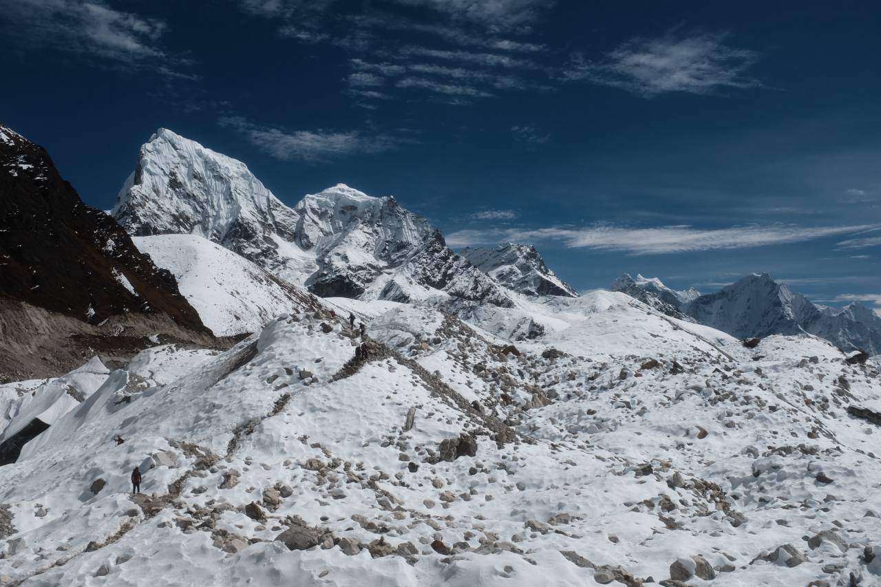Несложный поход в деревню Лобуче. Справа от нас будут возвышаться пики Табоче о Чолатзе, слева — Лобуче и впереди Ама Даблам. Где то на середине пути нам откроется вид на тропу классического маршрута к Эвересту и увидев на нем бесконечные караваны туристов, носильщиков, яков вы поймете что сделали правильный выбор пойдя к Эвересту через Гокио). А перед самой деревней Лобуче и нам придется встроиться в этот караван. После обеда прогулка на морену с видом на ледник Кхумбу.